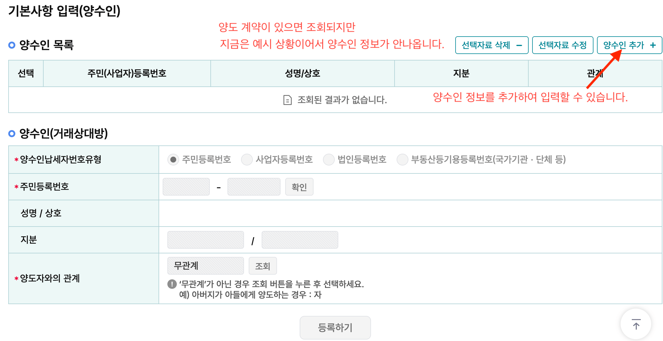 2. 양도자산 정보 입력 → 취득·양도내역 입력