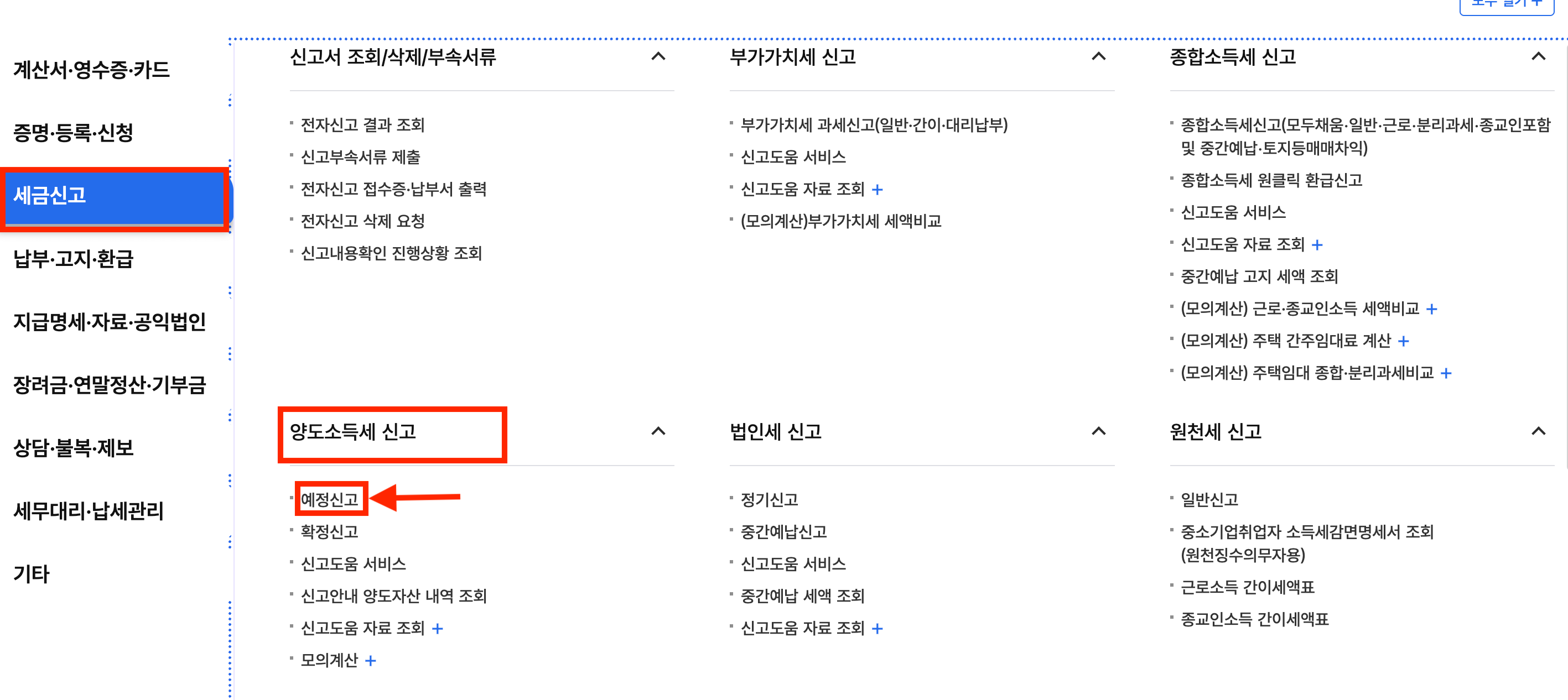 - 확정신고: 해당 연도의 양도 내역을 다음해 5월 1일 ~ 5월 31일 사이에 신고.